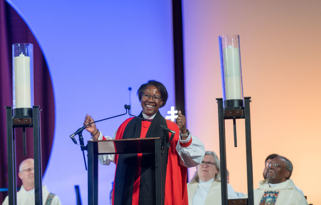 This has been quite a convention. I don’t know about you, but I’ve never been more hopeful for the Episcopal Church. There is something different in the air — and God knows we need it. This has been a time of stretching, experiencing new ways of being together, witnessing boldly as we’ve stood with the hurting and vulnerable, worshiping in many languages, and diving more deeply into our call to be the Episcopal branch of the Jesus Movement. We know that being the Episcopal Branch of the Jesus Movement isn’t a cool catch phrase made for bumper stickers and t-shirts—it is a deep dive into a way of being, a way of life — a way of love.