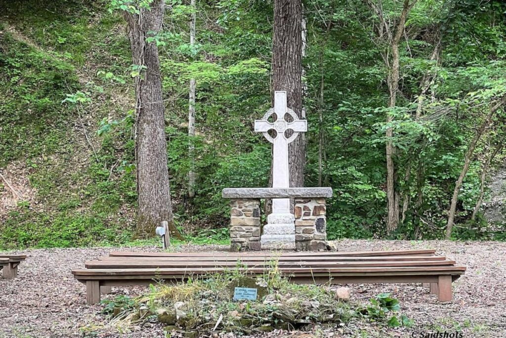 Holy Cross Day, 2022: The stone Celtic cross given in memory of Herman Frederick Willkie is relocated to the outdoor chapel at Waycross. Approximately 20 BCPs and a communion set go to Grace Unlimited at Butler University. Baptismal font goes to Good Samaritan, Brownsburg. Processional cross and torches go to The Table, Indianapolis. Thurible goes to St. Matthew’s, Indianapolis. Many vestments go to the Episcopal-Lutheran-Presbyterian campus chaplaincy at Ball State University. Parishioners take several pews and other sacred and decorative objects