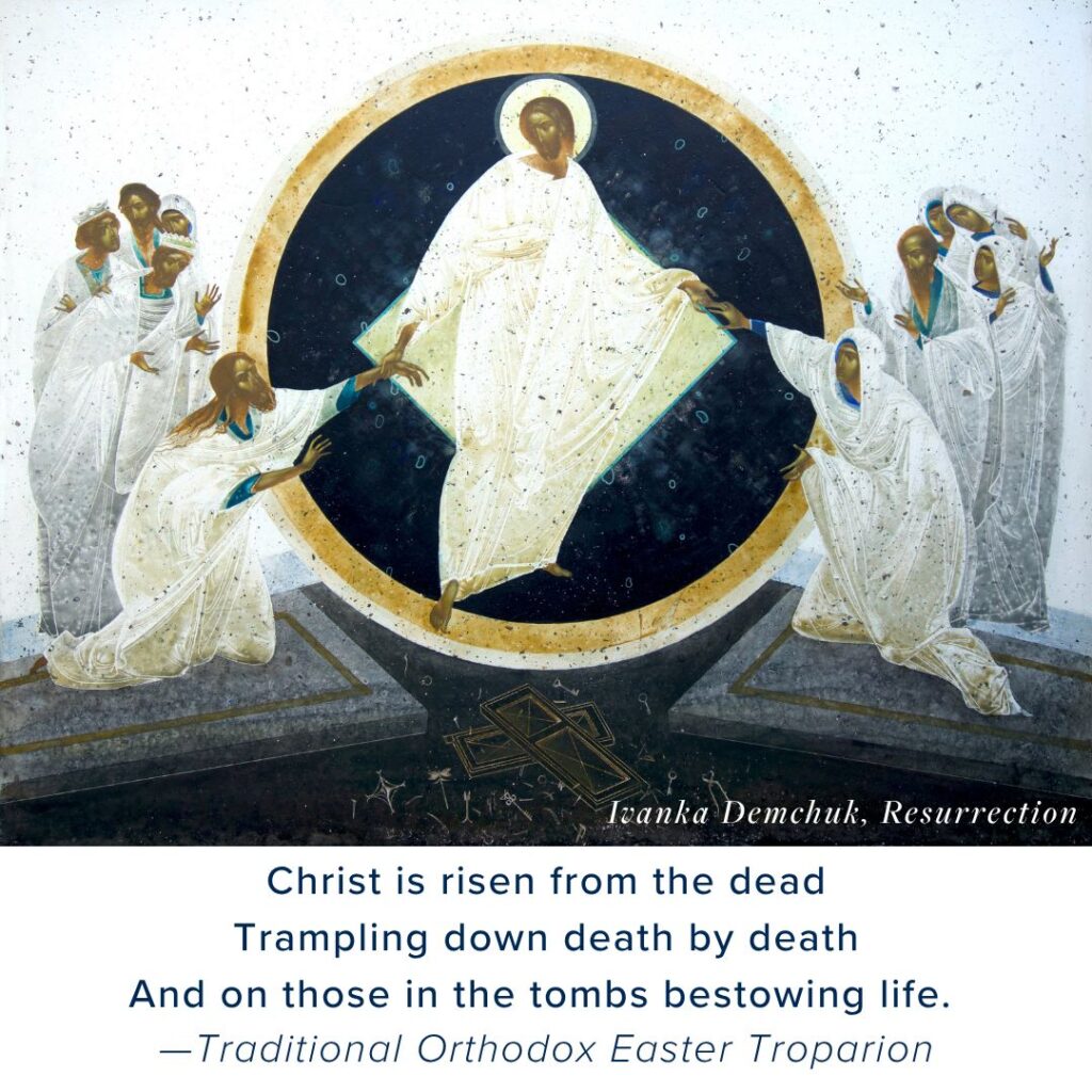 Centuries of Christians have taken solace in this image of Christ’s victory over death. In our day, as violent conflicts and wars rage around the world; as immigrants and refugees continue to suffer in detention centers; as our vulnerable young people and elders contend with life’s challenges in isolation; this icon of Jesus pulling humanity to resurrection and new life reminds us that our hope is in the Word made flesh who conquers death and evil. Though events in our world work hard to obscure this fact, Christ’s victory is our victory too.